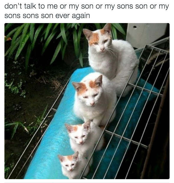 Dont talk to me or my son ever again is an internet meme that reached a high level of virality in 2016. New comments cannot be posted and votes cannot be cast. I think ur son died.