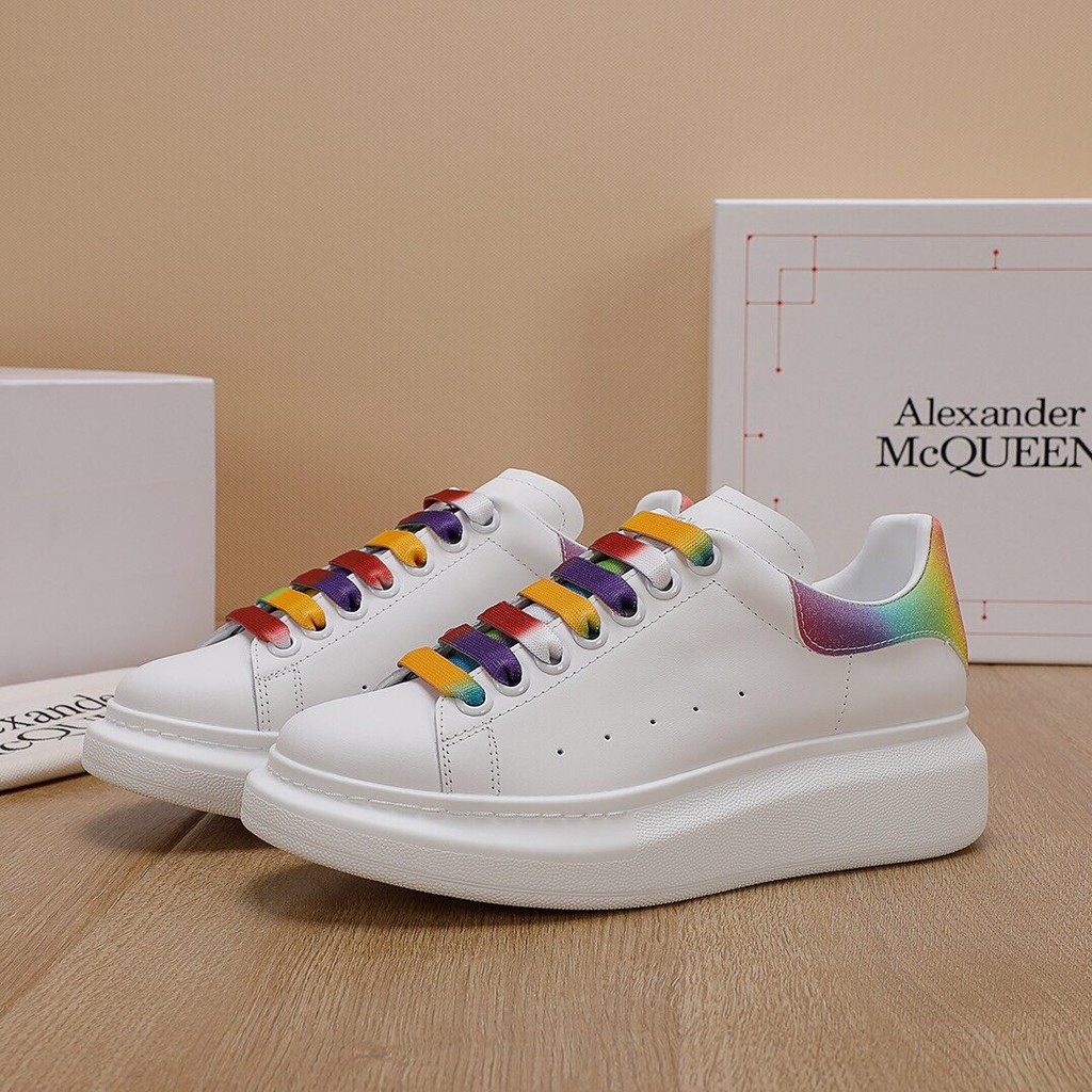 Buy Alexander McQueen Mens Gray Rainbow Leather Platform Sneakers. Womens alexander mcqueen rainbow eyelets oversized sneakers white low top buffed calfskin sneakers in white. Discover luxury mens shoes from Alexander McQueen.